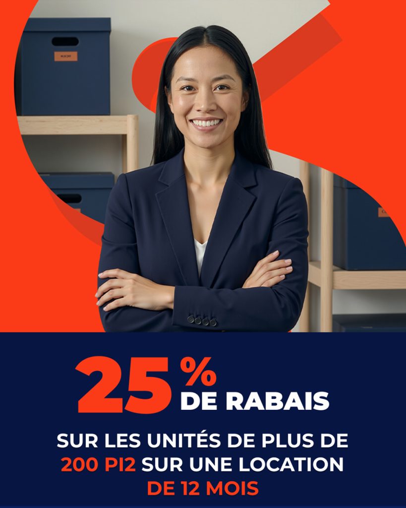 25% de rabais pour 1 an pour les unités de plus de 200 pi2.
